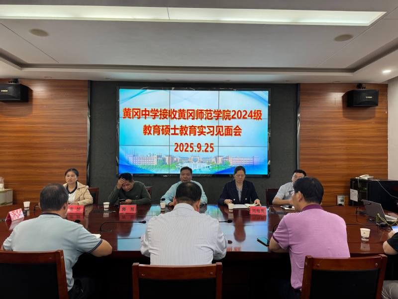为搭建高等教育与基础教育协同育人桥梁,推动教育硕士将理论知识转化为教学实践能力,在前期校内充分动员和准备的基础上,黄冈中学与黄冈师范学院于9月25日上午联合举办“黄冈中学接收黄冈师范学院2024级教育硕士教育实习见面会”。 黄冈中学副校长刘海英、郭旭,教务主任岑栋,黄冈师范学院研究生处副处长郑友阶、教育学院院长助理沈胜林出席了会议。会议由黄冈中学教务主任岑栋主持。